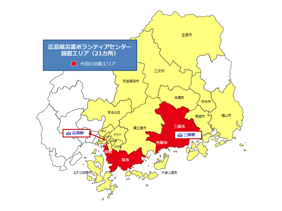 ※活動場所(予定):坂町、呉市、三原市、竹原市のいずれか(現地状況によって変更あり)
